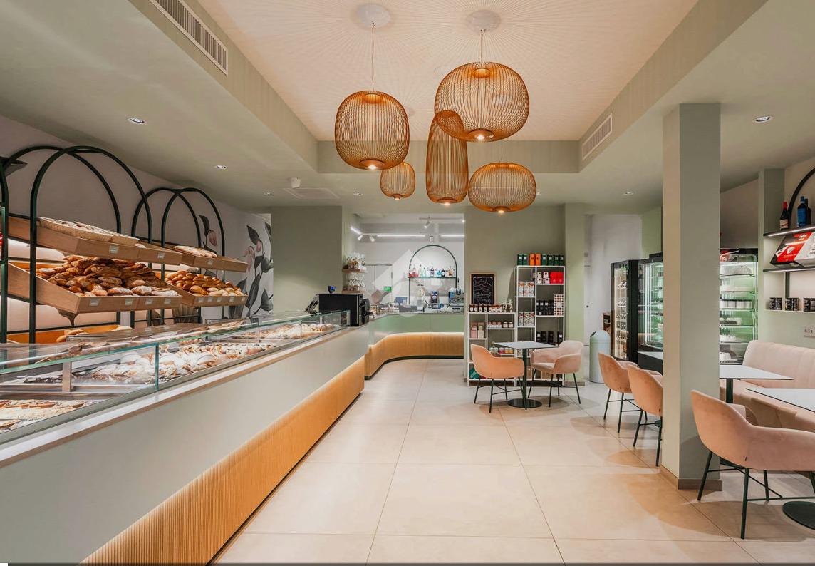 Il locale dispone di accoglienti posti a sedere sia all’interno sia all’esterno sotto un portico, offrendo uno spazio ideale per colazioni, pause caffè e aperitivi.