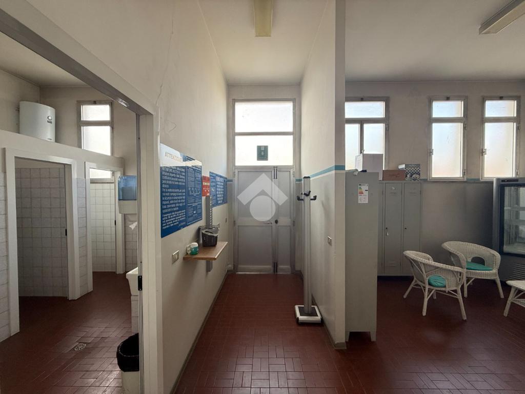 Salendo al primo piano tramite una comoda scala esterna, troviamo una sala esposizione di 230 mq, con servizi igienici, adesso adibita ad appartamento.