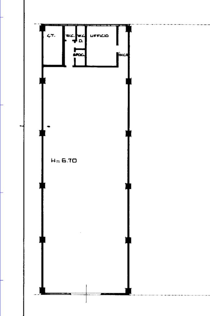 L’immobile presenta una buona altezza interna, con 6,70 metri sotto trave, ideale per attività di stoccaggio.