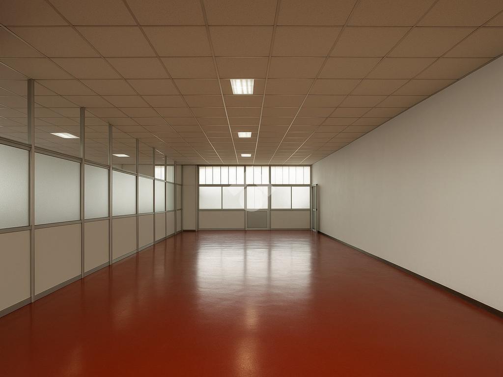 L’immobile è attualmente suddiviso in diversi locali grazie alla presenza di pareti mobili, che permettono di adattare gli spazi alle diverse esigenze produttive.
