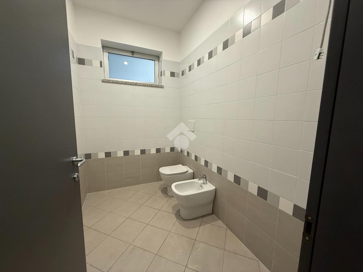 Gli uffici, presenti su entrambi i livelli, sono dotati di impianto di riscaldamento e raffrescamento, mentre i servizi igienici sono distinti per uomo e donna.