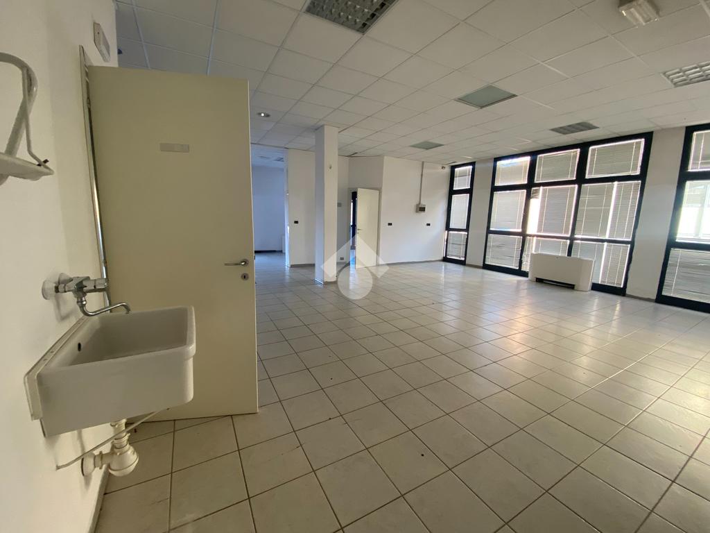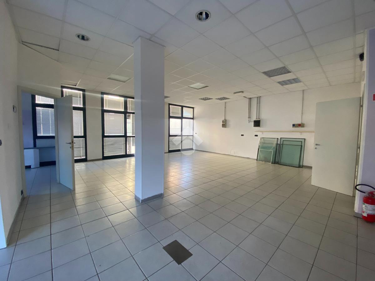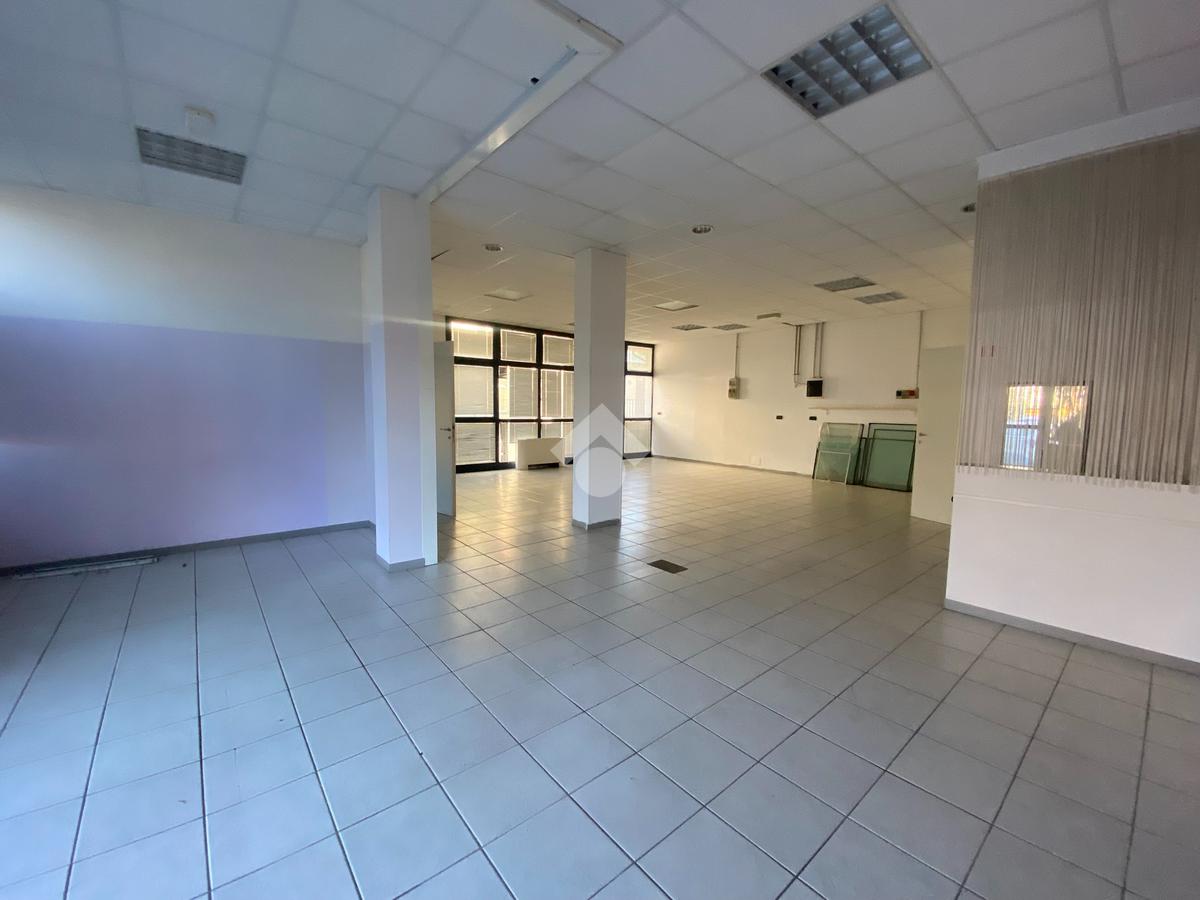 Lo spazio interno è attualmente open space, ideale per l'accoglienza dei clienti o l'esposizione dei prodotti, affiancato da un secondo locale separato che si presta perfettamente come ufficio privato o area operativa riservata.