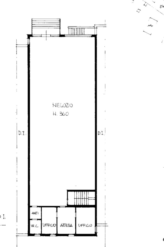 Attualmente il negozio si presenta open space, facilmente adattabile alle diverse esigenze, completato da un bagno e da tre ulteriori locali separati con accesso indipendente dal retro, ideali come uffici.