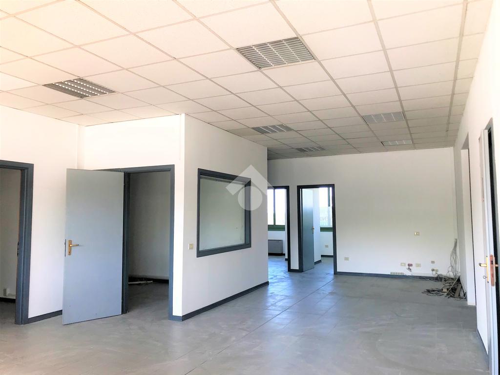 Tutti gli ambienti sono ampi e divisi fra tre vani ufficio, un archivio, ripostiglio e un'area commerciale sfruttabile come showroom, oltre all'antibagno e ai servizi igienici pronti all'uso.