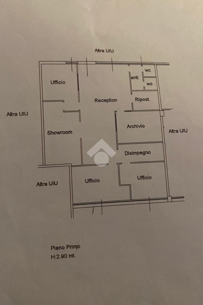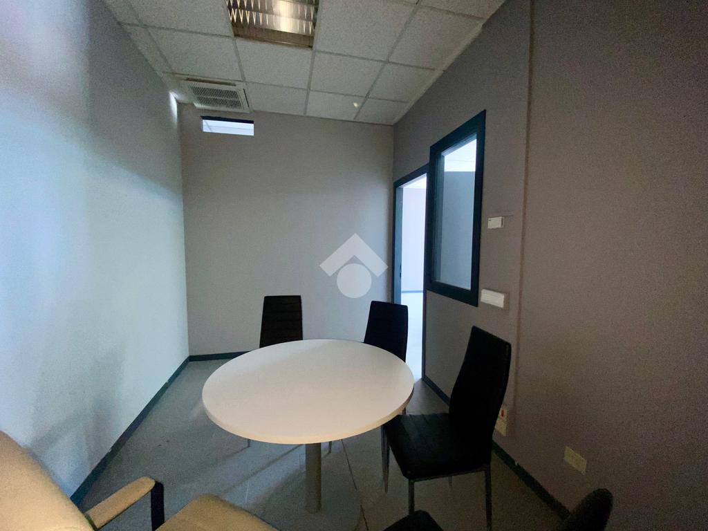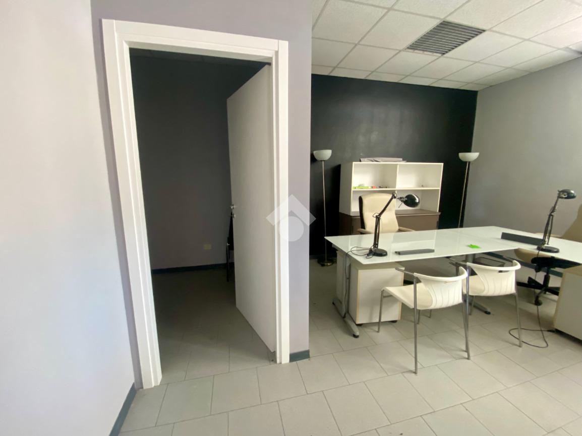 L’immobile è attualmente suddiviso in quattro locali principali, oltre a un archivio e due servizi con antibagno, soluzione ideale per studi professionali, uffici amministrativi o società che necessitano di spazi distinti e ben organizzati.