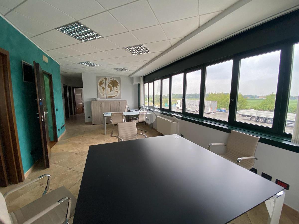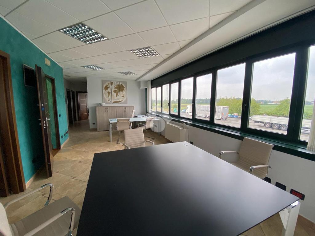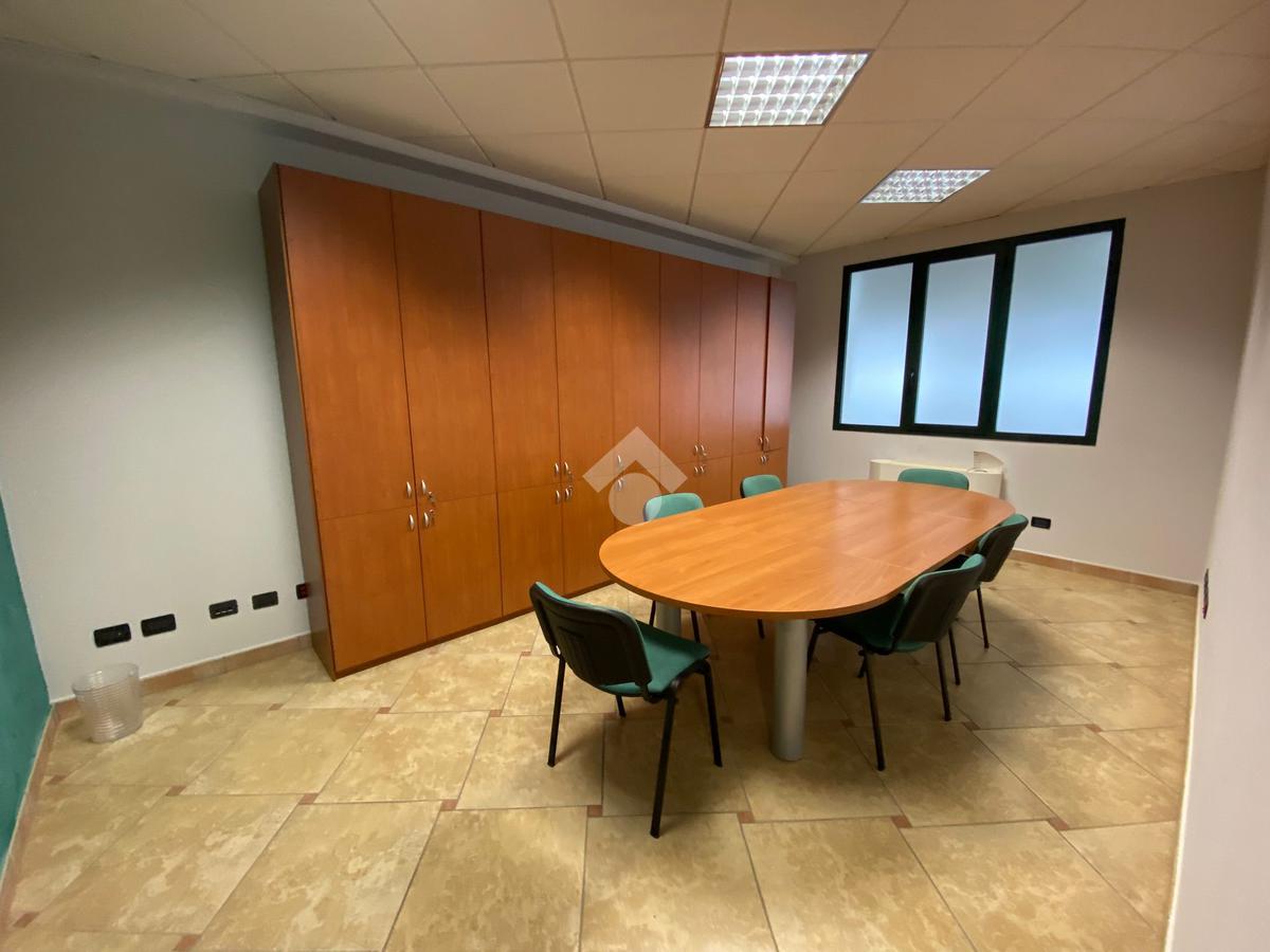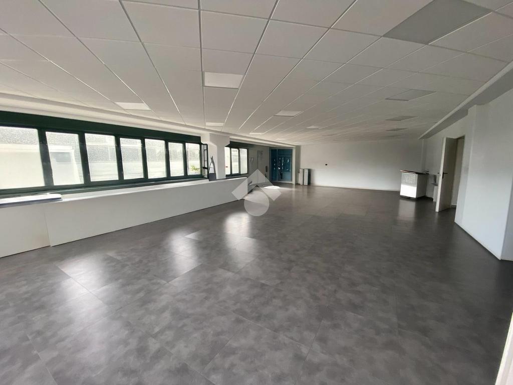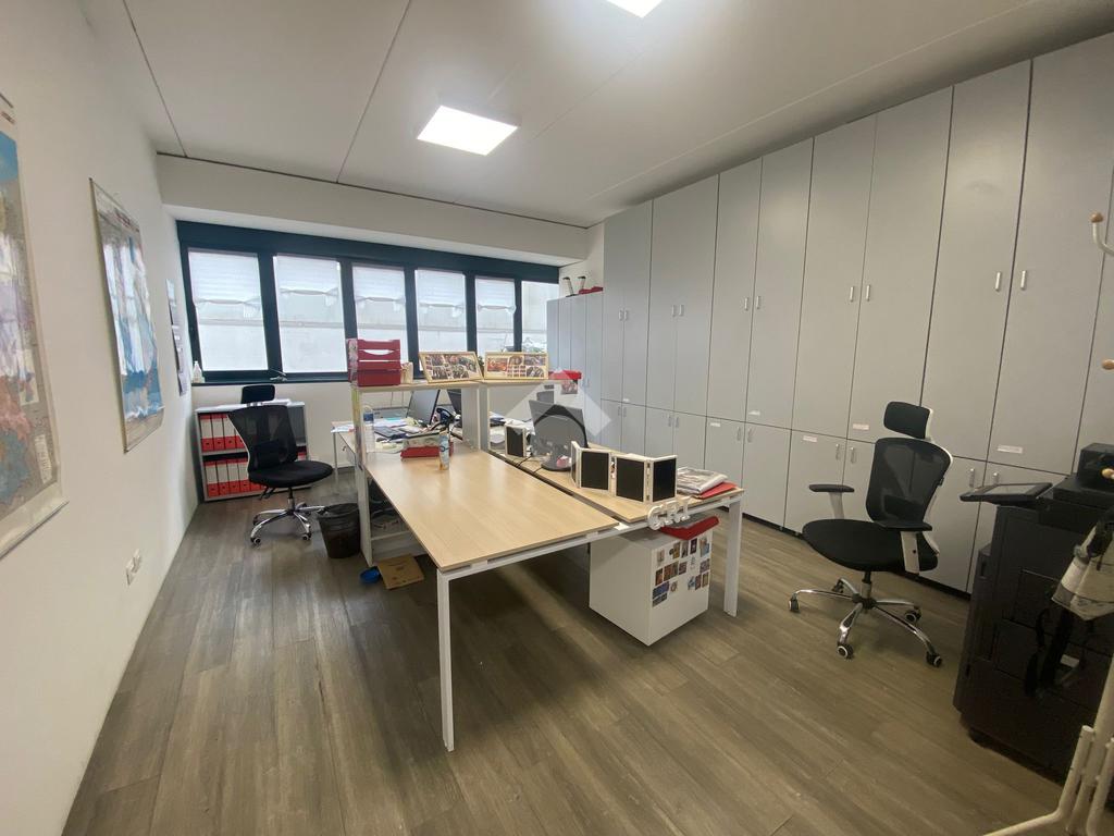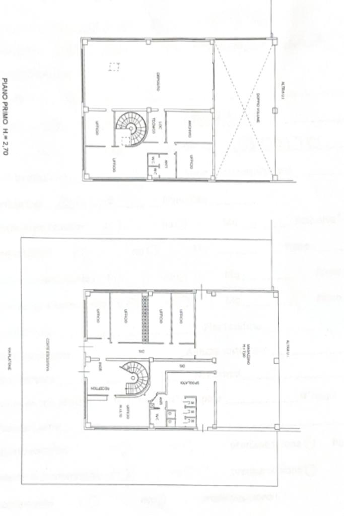 Completa il complesso un corpo uffici disposto su due piani: al piano terra si sviluppa un ampio open space con servizi dedicati, mentre al piano superiore si trovano quattro ambienti distinti, attualmente adibiti a esposizione, sala riunioni e uffici direzionali, anch’essi corredati da servizi.
