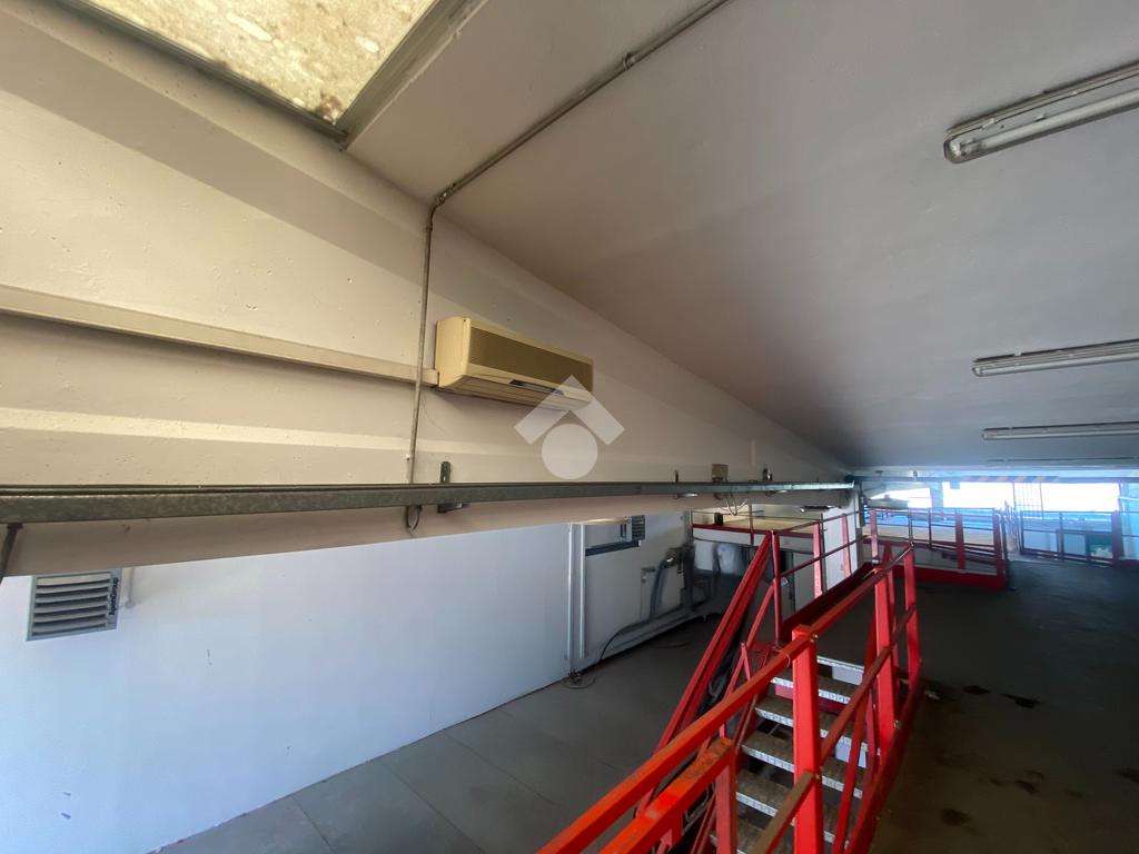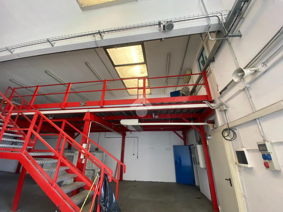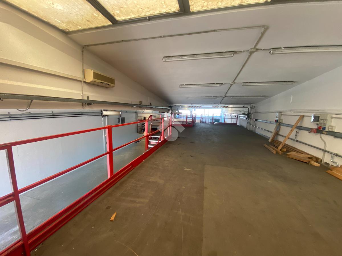 Sul soppalco è presente un secondo ufficio, ideale come area direzionale o per attività amministrative, e lo stesso soppalco consente di recuperare ulteriore spazio per il materiale.