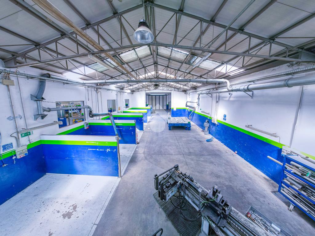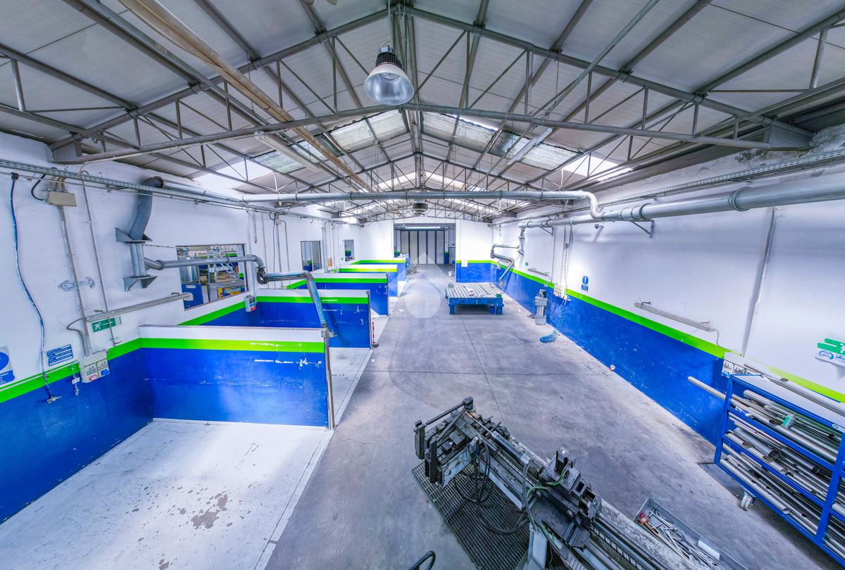 L'area produttiva di 1200 mq si divide in 3 zone, la prima con altezza 7 metri è dotata di carroponte da 6 tonnellate mentre le altre 2 zone hanno un'altezza di 5 metri inoltre dotate di un magazzino verticale automatico KARDEX. Tutte le zone sono riscaldate tramite caldaie a gas ed a muro troviamo le prese di potenza dell'impianto elettrico. Lo spogliatoio può comodamente ospitare 25 persone.